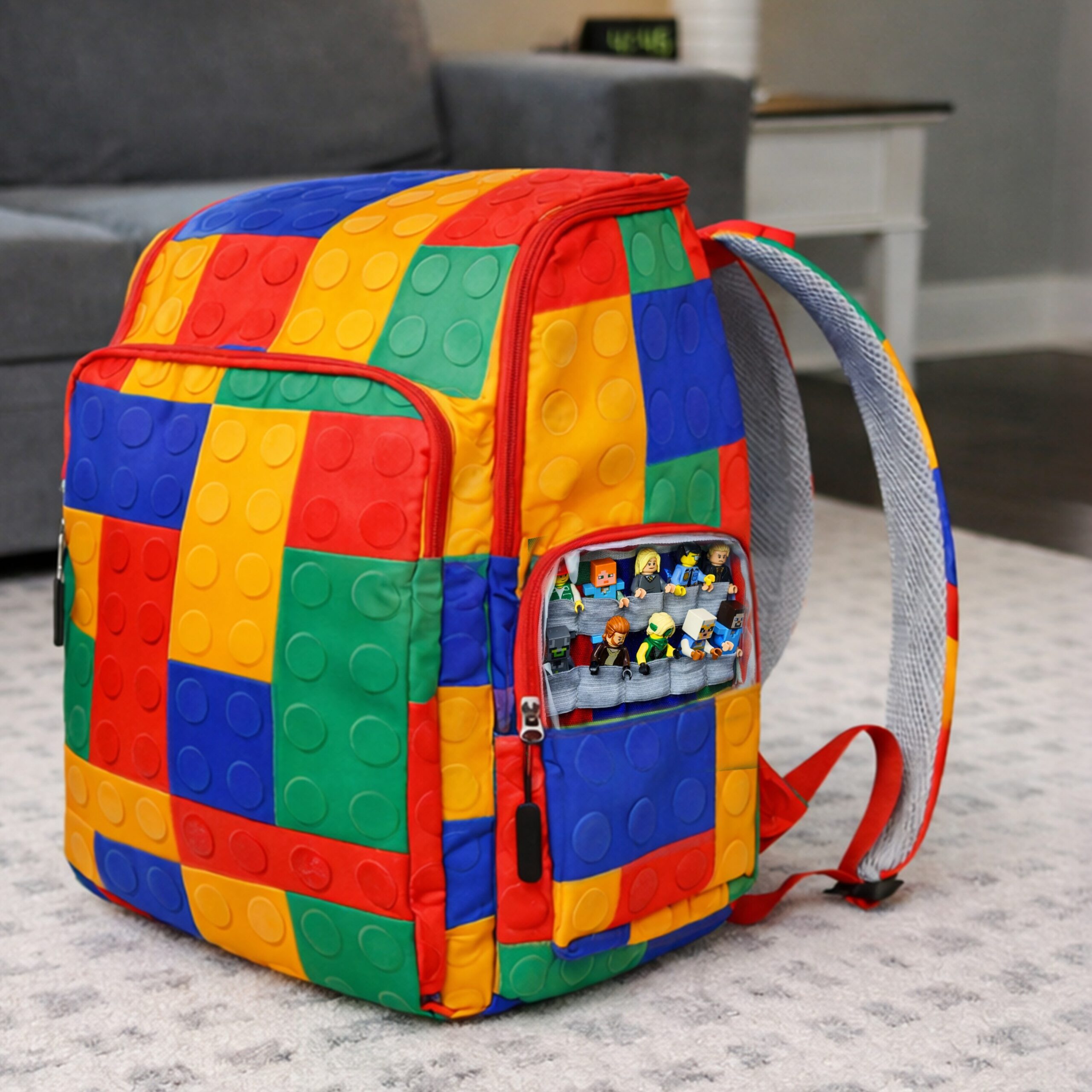 Additionally, BrickPack includes a clear front pocket with elastic slots for up to 10 minifigures, alongside space for accessories and instruction booklets. For added convenience, the bag has extra pockets for baseplates and a water bottle, and padded straps ensure comfort during travel, whether to the park, school, or relatives’ homes.