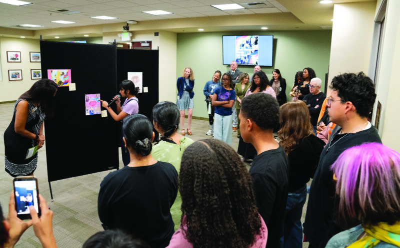 Local artist Gloria Locke attended the art show to support the students and was honored with a One Hart award for her community advocacy. Locke noted the power of art as a communicative medium, saying, “When you don’t have the words to say, your art will speak it for you.” Her published book, “First & Famous Black Trailblazers of Santa Clarita,” features hand-drawn portraits of notable Black figures in the area.